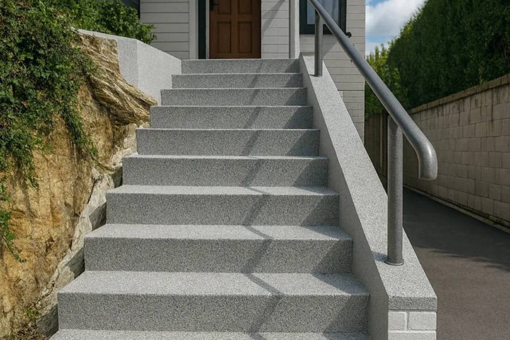 Choose from decorative flakes, stone effects, polished finishes, or custom colours that complement your home’s exterior.