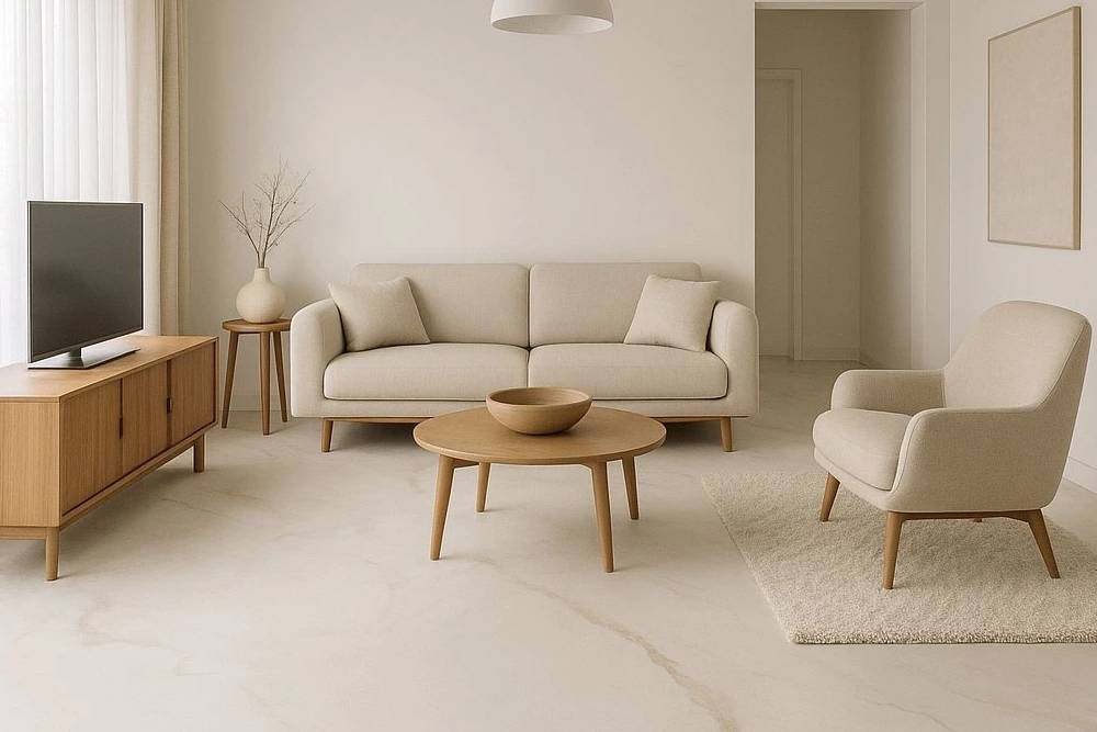Neutral greys and beiges for seamless indoor areas